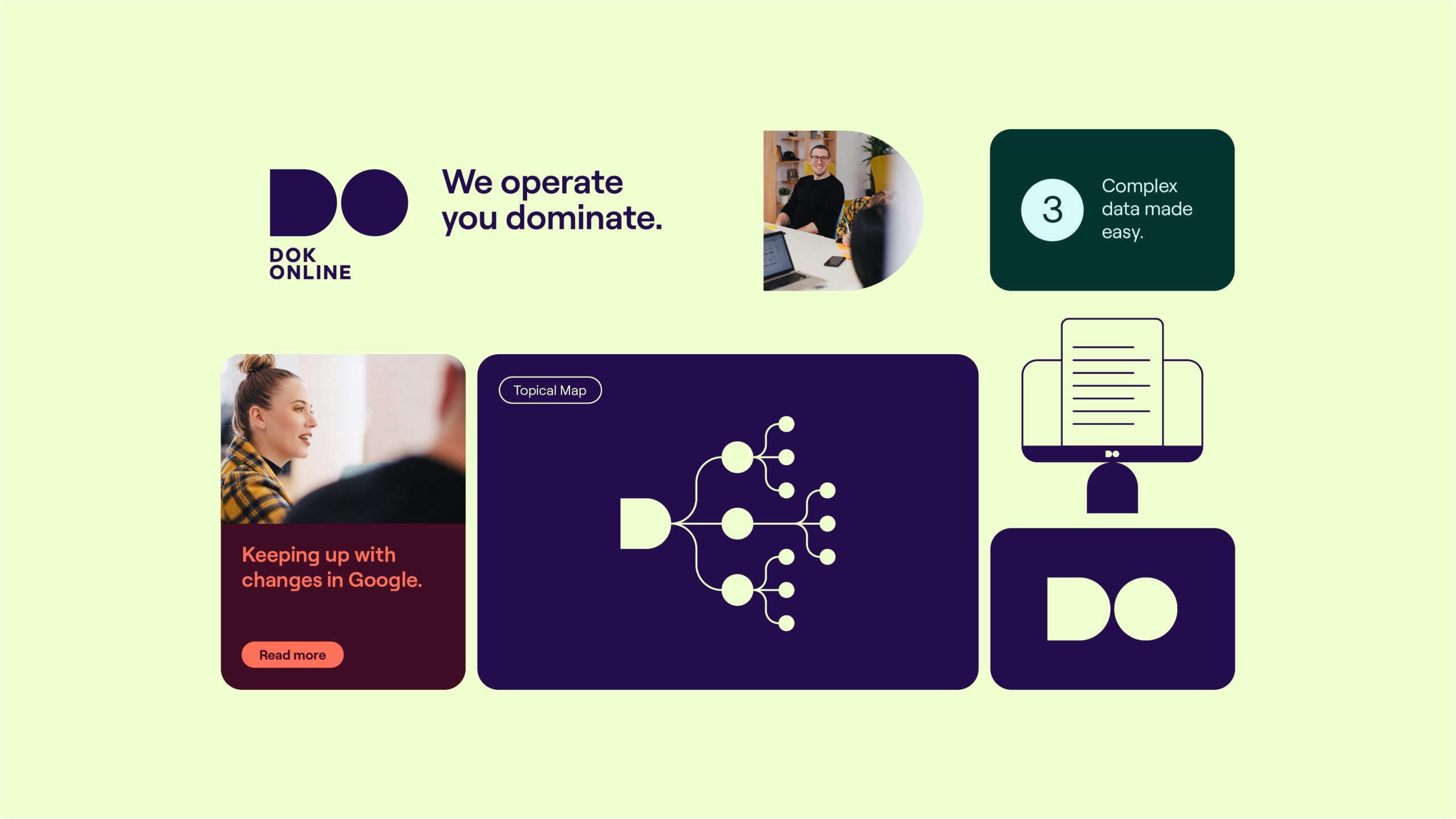 Rebranding for DOK Online, new logo, visual identity and website.